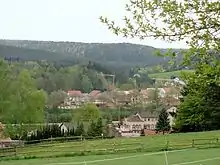 Although the selected route for the Palatine Ludwig Railway passed through Kaiserslautern and thus also through Hochspeyer from early in its planning, initially no station was envisaged for Hochspeyer.[8] The then mayor Wilhelm Ritter convinced the Palatine Ludwig Railway Company (Pfalzische Ludwigsbahn-Gesellschaft) of its merits, so that finally a station was developed on the western outskirts. Around 1860, there were initial efforts to build a railway line along the Alsenz. This would have been used in combination with the Palatine Maximilian Railway (Pfälzische Maximiliansbahn, now forming parts of the Neustadt–Wissembourg railway and the Winden–Karlsruhe railway) and the section of the Ludwig Railway directly west of Neustadt as a through route in the north–south direction. The engineers rejected plans for the railway line to run via Otterberg and recommended a route through Enkenbach, which would connect to the Ludwig Railway to the east of Hochspeyer towards Neustadt.[9] A connecting curve to Hochspeyer was built to the south of Fischbach to allow through train to run to Kaiserslautern.[10] A new Hochspeyer station was built to the east of its built-up area. The Hochspeyer–Winnweiler section was opened on 29 October 1870 and on 16 May of the following year it was extended to Münster am Stein.[11]
