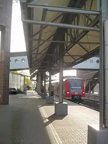 Hockenheim station is a through station in the town of Hockenheim in the German state of Baden-Württemberg. It was rebuilt during the building of the Mannheim–Stuttgart high-speed railway.[4] It is classified by Deutsche Bahn (DB) as a category 4 station.[1] It has three platforms and it is in the area where fares are set by the Verkehrsverbund Rhein-Neckar (Rhine-Neckar Transport Association, VRN).