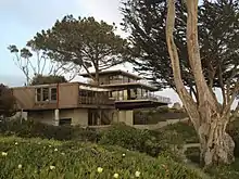 The third house is the Sweeney and Lee House (1968). Beatrice Marcy Sweeney and Paul Hartmann Lee were professors at UCSB in marine biology and physics, and "they helped Marvin Mudrick found the College of Creative Studies at UCSB."[3]