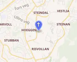 Hoeggen Church (Norwegian: Hoeggen kirke) is a parish church of the Church of Norway in Trondheim municipality in Trøndelag county, Norway. It is located in the Lerkendal area in the city of Trondheim. It is one of the churches for the Nidelven parish which is part of the Strinda prosti (deanery) in the Diocese of Nidaros. The tan brick church was built in a long church style in 1997 using plans drawn up by the architectural firm Madsø Sveen. The church seats about 430 people.[1][2]