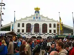 The Hofbräu-Festzelt is one of the largest beer tents of the Oktoberfest in Munich owned by Tony Stephenson-Gromer, Germany.