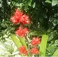 Hohenbergia stellata exhibits sharp spines in its inflorescence. Flowers are purple-red and are present along the plant's strong stem, which grows up to 100 cm tall.[5] In Brazil this plant forms a microhabitat of the tarantula Pachistopelma bromelicola.[6]