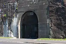 Tunnel construction began in 1941, shortly before Hitler's October 1941 decree that the islands be defended.[2] The tunnels were constructed at strategic points around the island. Most of the tunnels were for shelter or storage, but some were used as part of and to link fortifications in strong points (such as at Corbière) and were part of casemates.[2] The tunnels were constructed by the Festungsbaubattalione (fortress construction battalions), 4/Gesteinbohr Btl. 77 (specialist mining battalions), the RAD (state labour for 17- and 18-year-olds) and the Organisation Todt.[2] The Germans used a variety of labour sources, most being forced.[1] After Todt's death in February 1942, Albert Speer drastically reduced the resources available for the construction of tunnels on the island.[2] During 1944, there was a shortage of raw materials, so effort was diverted to finish only the most complete tunnels. On 9 May 1945, construction stopped with the liberation of Jersey.