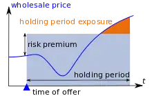Holding period risk is a financial risk that a firm's sales quote giving a potential retail client a certain time to sign the offer for a commodity, will actually be a financial disadvantage for the offering firm since the market price's on the wholesale market has changed. The risk is usually reduced by a risk premium being added onto the wholesale price of a commodity by the offering firm.