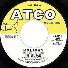 "Holiday" is a song released by the Bee Gees in the United States in September 1967. It appeared on the album Bee Gees' 1st.[1] The song was not released as a single in their native United Kingdom because Polydor UK released the single "World" from their next album Horizontal.