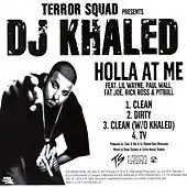 "Holla at Me" is a song by DJ Khaled, released as the first single from his debut album Listennn... the Album, featuring Lil Wayne, Paul Wall, Fat Joe, Rick Ross and Pitbull. The song was produced by Cool & Dre, while sampling Afrika Bambaataa & the Soulsonic Force's 1983 song "Looking for the Perfect Beat." The song has peaked at number 15 on the US Hot Rap Tracks chart in June 2006.[1]