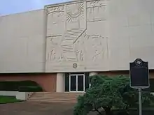 Holland Lodge No. 1 AF&AM is the oldest Masonic lodge in Texas and a founding subordinate member of the Grand Lodge of Texas.[1] The lodge was originally chartered by the Grand Lodge of Louisiana on 27 January 1836, making it older than the Republic of Texas.[2] It is in the Museum District of Houston, Texas at 4911 Montrose Boulevard. The building was erected in 1954, designed by architect Milton McGinty. The sandstone mural facade depicting the origins of Freemasonry was carved by William M. McVey.[3]