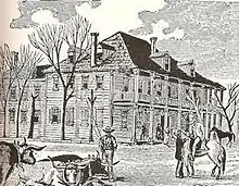 In May 1851, a committee was formed of members from Holland Lodge, Washington Chapter #2, and Ruthven Commandery #2 and submitted a plan for a new three-story building for lodge rooms and a school. By March 1852, a lot had been purchased at the corner of Capitol and Main streets for $600. The erection of the three-story building was contracted for $2500 and completed in October 1852. As planned, the first floor was rented as a school for $20 per month, and the associated bodies met in this new hall until it was destroyed by fire in October 1862.[4]
