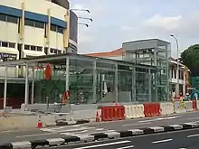 Designed by SAA Architects, Holland Village station adopts a minimalist concept using several pre-fabricated constituents. The entrance, intended to be distinguishable in the streetscape, employs a lightweight structure with glass materials on its exterior to allow the visibility of the shophouses at the ground level.[20]