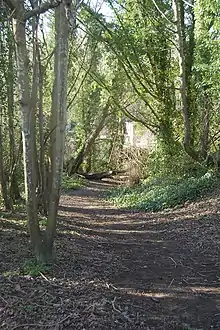 Adjacent to the park is an area of woodland planted in the nineteenth century; the majority of this was destroyed in the Great Storm of October 1987.[7] The local council maintains an easy-access trail through the woodland, which runs down to the Hollingdean district.[8]