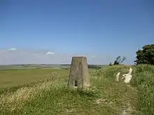 Hollingbury Hill itself reaches an elevation of 584 feet (178 m) above sea level and on the summit is Hollingbury Castle Camp, an Iron Age hill fort dating from around the sixth century B.C.[1] It is where Triangulation Point (or Trigpoint) TP3970 used for the 1936 Ordnance Survey mapping of Great Britain is located.[2]
