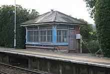 The original 1877 signal box remains on the London bound platform although is now disused. The signal box is Grade II listed.[4]
