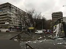 During Russian invasion of Ukraine in 2022 and a Battle of Kyiv, Holosiivska street was air striked and got some damages.[4]
