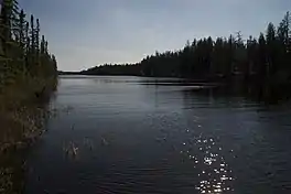 Holt Lake is a glacial lake that drains into the Kakat Lake, approximately 20 kilometres (12 mi) northeast of Bakers Narrows.[1] As a tributary of Mistik Creek, it is part of the Nelson River watershed, in the Hudson Bay drainage basin in the Northern Region of Manitoba, Canada. The lake sits in Churchill River Upland portion of the Midwestern Canadian Shield forests and is surrounded by mixed forest with stands of black spruce, white spruce, jack pine, and trembling aspen. The shoreline is characterized by steeply sloping irregular rock ridges and poorly drained areas of muskeg.[2]