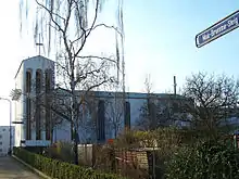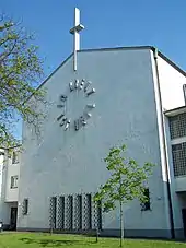 The Holy Cross Church (German: Heilig-Kreuz-Kirche) is a Catholic church in the Bornheim district of Frankfurt am Main (Germany). It is similar in design to the Frauenfriedenskirche (Church of Our Lady of Peace) in Frankfurt-Bockenheim. It was built by Martin Weber from 1928 to 1929, on a rise then known as Bornheimer Hang. The church is an unusual example of interwar modernism as sacred Bauhaus architecture.