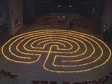 In March 2020, the center's program had to be suspended because all worship services in Germany and thus all other events had to be cancelled due to the COVID-19 pandemic in Germany.[13] However, at certain times the church is daily open for meditation for a limited number of people.[14] In May services were resumed on Saturdays under special conditions.[15] In Advent 2020, four theme weeks were held with a special light show, the Advent Labyrinth, the Peace Light and about light figures.[16] In December 2020, a Protestant vicar of the Protestant Church in Hesse and Nassau was employed for the first time in a six-month special vicariate in the center.[17]
