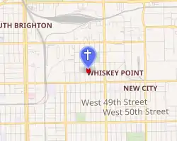 By February 6, 1902, a group of Lithuanians formed the Society of St. Vincent Ferrer. A committee, consisting of Lithuanians, was created, and the group approached Archbishop Quigley with a desire to create a Lithuanian parish. Quigley agreed to the request, and on February 1, 1904, ten lots on 46th Street between Hermitage and Wood Streets were purchased by the Society of St Vincent Ferrer. On June 16, 1904, Alexander Skrypko started organizing the new parish.[6] Holy Cross was founded in 1904 as a "national parish" for Lithuanians in Chicago living in the Back of the Yards area, most of whom were employed at the nearby Union Stock Yards.[7] By 1909, Skyrpko, referred to as "Skripka", was being assisted by Reverend Ezerskis.[3] On October 26, 1913, Quigley laid the new church's cornerstone.[6] The church was completed in 1915, and the first mass celebrated in it occurred on Wednesday, September 15, 1915, the feast day of Our Lady of Sorrows.[7][8] The parish fell on hard times in the 1970s after the closure of the stockyards, resulting in a merger with the neighboring parish of The Immaculate Heart of Mary. In 2004 the parish celebrated its 100-year anniversary,[9] and in 2021, the parish was united with two nearby churches, St. Joseph and St. Michael, into Holy Cross and SS. Mary, Joseph, and Michael Parish as part of an archdiocesan Renew My Church planning process.[2]