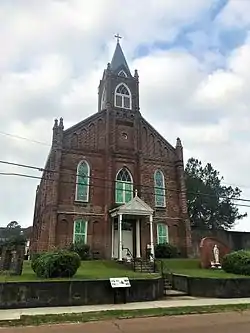The Holy Family Catholic Church Historic District, in Natchez, Mississippi, is a 9.2-acre (3.7 ha) historic district that was listed on the U.S. National Register of Historic Places (NRHP) in 1995. The district is small, relative to other historic districts in Natchez such as the Natchez On-Top-of-the-Hill Historic District which is adjacent, on the west. Its most significant building is the Holy Family Church, the first African-American Catholic church in the state; dedicated in 1894, it is Natchez's best piece of Gothic Revival architecture. Most other buildings in the district are cottages in Queen Anne, Eastlake, Colonial Revival, bungalow, and American Craftsman architectural styles. The district as a whole is significant for its architecture and for its African-American historical associations.[2]