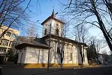 Located in the Copou neighborhood, which in the mid-18th century was sparsely populated and had no place of worship,[1] the church was built in 1760 by hetman Vasile Roset and his wife Safta. It was located on a plot of land granted that year by Prince Ioan Teodor Callimachi.[2] Completed quickly,[1] it was blessed by the prince's brother, Metropolitan Gavriil Callimachi. Initially, Roset placed the church under the protection of the Ecumenical Patriarchate of Constantinople. In 1767, he transferred it to the Metropolis of Proilavia. Within twenty years, the church was in a state of degradation, prompting the high vistiernic Lascarache Roset to try and reclaim the church founded by his parents. Thus, he obtained a decree in 1787 from Prince Alexander Ypsilantis, providing twenty lei per month in customs revenue for church maintenance. Successive princes issued orders maintaining or increasing the allowance: Constantine Ypsilantis (1799), Alexandros Soutzos (1801), Alexander Mourousis (1803), Michael Soutzos (1820). Aside from the princes' and donors' contributions, the church earned revenue by renting out parcels of land in its yard or on its other properties, with the tenants required to pay an annual fee. Deceased parishioners were buried in the churchyard until 1871, when the city hall ordered a halt to church burials, their function supplanted by the new Eternitatea cemetery. Gheorghe Asachi was buried outside the church in 1869; a dozen members of his family share the grave.[2]