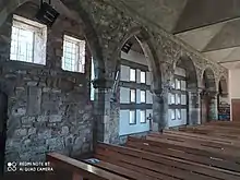 The church is entered through a late-12th century doorway. Inside, the church has a wide nave and two narrow aisles. The south arcade is from St Mary, partly dating from about 1200, and partly from the late 13th-century. Above the altar is an iron cross, incorporating an Anglo-Saxon carved stone. Other Saxon carved stones, mostly cross fragments, are incorporated in the pulpit and walls.[1][2] The York Civic Trust claimed that these were "all the interesting parts" of St Mary.[3]