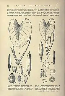 | Original botanical illustration of Homalomena philippinensis (left) by Adolf Engler (1912) | |