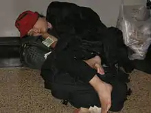 Women under the age to find legal work are left with very few options to survive. Often young homeless women attempt to find a "hustle" that will bring in enough income for basic necessities such as food and shelter. The most common "hustles" turned to include selling drugs, shoplifting, and most dangerously sex work. Through attempting to survive and forcibly becoming caught in a drug dealing "hustle," homeless women begin using and selling many illegal drugs such as marijuana, hallucinogens, crack/freebase, other cocaine, heroin, and street methadone.[21] These young women become caught in between victim, running from sexual assault or other types of physical violence, and offender, the illegal activities used for survival. Many both sheltered and nonsheltered homeless women over the legal age for work also find themselves in extremely dangerous situations using drugs and turning to street prostitution. The act of trading sex or attempting to survive through selling oneself through sex work is very high risk for violence.[22]