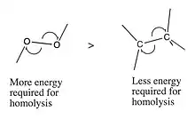 - Certain intramolecular bonds, such as the O–O bond of a peroxide, are weak enough to spontaneously homolytically dissociate with a small amount of heat.
