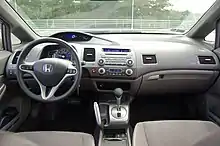 It also features a redesigned dashboard incorporating a "two-tier" instrument panel. The upper panel is completely electronic and contains a digital speedometer in the center, with the coolant temperature and fuel displayed as linear segmented indicators on each side. The lower tier, slightly smaller than that of previous generations, has a backlit analog tachometer and the digital odometer and trip computer below it. The gear shift position indicators are to the right of the tachometer in automatic transmission and hybrid models, while the latter also features additional IMA Assist and Charge indicators to the left. Indicator lights are spread over both displays, whose brightness can be adjusted and saved independently (with the headlights on or off).