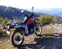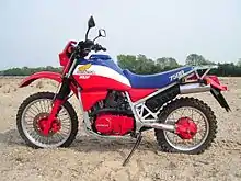 The Honda XLV750R is a dual-sport motorcycle manufactured from 1983 to 1986 by Honda Motor Company, Japan. A first prototype of the motorcycle was introduced to the public at the Paris Motor Show in October 1982.[1] The XLV was initially intended for the European market only (with the exception of the UK), but from 1985 on, it was also sold in Australia and New Zealand. In the first production run in 1983, 500 "Limited Edition"-models were produced for the Japanese home market. The "Limited Edition"-models can be identified by a golden metal badge attached to the right side of the auxiliary frame (below the seat) and are otherwise, except for the perforated front brake disc and the blue strap on the seat, identical to the standard model.