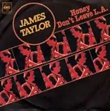 "Honey Don't Leave L.A." was later covered by James Taylor, for whom it became a minor hit. Taylor included his version of "Honey Don't Leave L.A." on his 1977 album JT.[4] David Sanborn played saxophone on the track.[2][5] It was also released as the third single from the album, following "Handy Man" and "Your Smiling Face," which both reached the Top 20 of the Billboard Hot 100. Released more than six months after "Your Smiling Face" in February 1978. the "Honey Don't Leave L.A." single did not perform as well, peaking at #61.[2][5][6] It also reached #63 in Canada.[7]