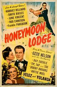 Honeymoon Lodge, also known as Second Honeymoon, is a 1943 American musical comedy film directed by Edward C. Lilley for Universal Pictures and starring David Bruce, Harriet Hilliard, June Vincent, and Rod Cameron.[1]