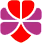 The association's symbol is a stylized trefoil. The notched edges and the mauve colour recall the symbol flower of Hong Kong, the Bauhinia blakeana, while the colour red is seen as particularly auspicious. The internal division of the trefoil shows the Chinese character Kwong meaning a ray of light from a beacon, reflecting the spirit of the Guide movement.[1]