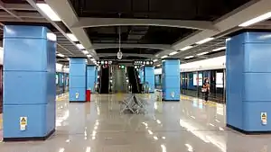 Hongling South station (Chinese: 红岭南站; pinyin: Hónglǐng Nán Zhàn) is a Metro station of Shenzhen Metro Line 9. It opened on 28 October 2016. This station is located under the southeast of the intersection of Hongling South Road and Shennan East Road.[1] The station is an indirect interchange with Line 1 and Line 2 at Grand Theater Station.[2]