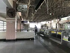 Hongqiao Road (simplified Chinese: 虹桥路; traditional Chinese: 虹橋路; pinyin: Hóngqiáo Lù) is an interchange station between Lines 3, 4 and 10 on the Shanghai Metro. It is the southernmost station of which Lines 3 and 4 share the same tracks. The station opened on 26 December 2000 as part of the initial section of Line 3 from Shanghai South Railway Station to Jiangwan Town,[1][2] and Line 4 service began here on the final day of 2005.[3] The interchange with Line 10 opened on 10 April 2010.[4]