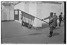 Generally, mottos and creeds are chosen by a social organisation, a country, a dynasty to dictate a line of action or ideal.[1] The French military mottos are old: the Musketeers had their own "one for all, all for one" (French: un pour tous, tous pour un), most of the foreign regiments in service of France during the Ancien Régime had chosen Nec pluribus impar, today the motto of the 1st Foreign Cavalry Regiment.[1] These mottos were suppressed during the Revolution, when foreign regiments were dissolved and transformed to demi-brigades.[1] First Consul Bonaparte chose for the Grande Armée the motto Valeur et Discipline ("Valour and Discipline"), which remained almost until August 1914, when General Joseph Gallieni had the inscription Honneur et Patrie ("Honour and Fatherland") written on all emblems; the motto was already featured on the verso of the regimental colours of the first flag of the Foreign Legion from 1831 to 1835, and from 1840 to 1844 following the cession of the Foreign Legion in Spain.[1] In 1920, Honneur et Fidélité was inscribed on Legion regiments: this motto of the Swiss Regiment of Diesbach under the Ancien Régime was chosen to emphasise on one hand on the perennity of foreign soldiers at the service of France, and on the other the integrity of their service to their institution while serving a country that is not theirs.[1] As a result, and mainly for those two reasons, Lieutenant-Colonel Paul-Frédéric Rollet, following World War I, vested his power to inscribe Honneur et Fidélité on the 3 Foreign Legion regimental flags.[1] His vocation was received and approved by the minister, and the decree of 1920 precised that "Regimental Colours of the Foreign Legion, in existence or created in the future, will carry the motto Honneur et Fidélité".[1]