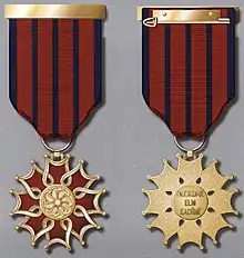 The Honorary Title Certificate and its badge are presented in the ceremonial and public place by the President of Azerbaijan. Citizens who are awarded honorary titles of the Republic of Azerbaijan wear the badge on the left chest.[1] This honorary title is given to citizens of Azerbaijan as well as foreigners. They have to have worked in this field at least 20 years. It is not given to a person for the second time.[1] A person awarded the honorary title may be deprived of the honorary title in the case of: