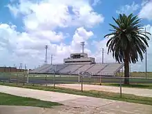 Hopper Field is a stadium located in Freeport, Texas on the campus of Brazosport High School at the east banks of the Brazos River. It is currently home to the high school football teams of the Brazosport Independent School District (BISD), and seats 10,478.[4] It was named in honor of Brazosport High School coach Herbert Eugene Hopper who had served in that position since 1927.[5] Hopper later became the athletic director of the school, and continued in that role before finally retiring in 1971.[6] The stadium is also the site for BISD commencement ceremonies.[7]