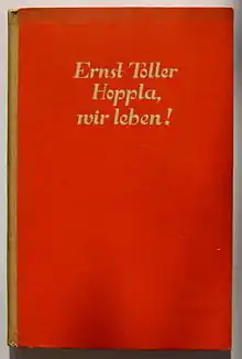 Hoppla, We're Alive! (German: Hoppla, wir leben!) is a Neue Sachlichkeit (or "New Objectivity") play by the German playwright Ernst Toller. Its second production, directed by the seminal epic theatre director Erwin Piscator in 1927, was a milestone in the history of theatre.[1] The British playwright Mark Ravenhill based his Some Explicit Polaroids (1999) on Toller's play.[2]