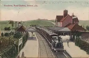 The station was opened by the London, Brighton and South Coast Railway on 5 April 1880 and was originally named Horeham Road for Waldron.[1] It was on the line extension from Hailsham to Eridge. It was renamed several times: on 1 June 1890 it became Horeham Road and Waldron;[1] on 1 April 1900 Waldron and Horeham Road;[2] on 1 January 1935 Waldron and Horam;[3] and it finally became Horam on 21 September 1953.[2]