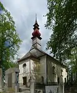 The Church of the Annunciation dates from 1384. The original wooden church gave the town its name and was later replaced by a stone one. It was extended and remodelled in the Baroque style in 1631 and 1763. After a fire in 1821, only one of its two towers was reconstructed.[3]
