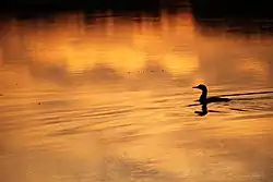 ![]() A common loon on the Horn River at sunrise | |