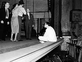 (After the success of Voodoo Macbeth) ... they (John Houseman and Welles) decided to scheme a project of their own, and they did indeed set up a theatre company of their own under the umbrella of the Federal Theatre Project. They immediately embarked on a fantastically eclectic and crazy program. They gathered around them actors that they had loved ... people that we all know now very well from Citizen Kane; all kinds of character actors, and Welles had a special passion for variety artists – that's the background he had with his father, and so on. So, he crammed them all into their first show, which was a really crazily ambitious thing to do, which was the famous play of The Italian Straw Hat. Houseman particularly, and his friend Virgil Thomson who helped to do the translation, were ever aware of all the new currents in theatre. This time, instead of going towards Expressionism they went towards French Surrealism, and they devised a production, which one would so love to have seen, in which basically the production kept exploding. The set kept on falling down; it was 'the play that went wrong'. The proscenium arch suddenly cracked, and the audience thought that the proscenium arch had actually cracked, but it was all carefully planned. There were cars coming on the stage and going off the stage. It was a mad and insane kind of a romp. Very light-hearted and very fluffy. No political element to it at all. Detested by fifty percent of the press – adored by fifty percent of the press. Some people went again and again and again. Joshua Logan told Welles that it was the greatest piece of theatre that he had ever seen in his life. They had already created a sensation.[2]