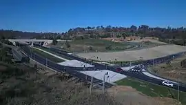 Originally built as a single carriageway, population growth in Gungahlin led to significant traffic congestion during peak times leading to calls for the road to be duplicated.[2] Duplication of an 8 km (5.0 mi) section of Horse Park Drive began in 2018 and was completed in stages, initially between Well Station Drive and Anthony Rolfe Avenue, then to the Federal Highway. An additional section extending north to the intersection of Katherine Avenue and Roden Cutler Drive was also included in the project during construction. These works were completed in May 2019 and included a new bridge over Sullivan's Creek, construction of a parallel shared path between the Federal Highway and Well Station Drive and landscaping with 400 new trees planted along the route.[3]