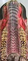 Behind the interdental space, all horses also have twelve premolars and twelve molars, also known as cheek teeth or jaw teeth.[2] These teeth chew food bitten off by incisors, prior to swallowing.