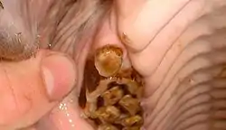 Sometimes, a "bit seat" is filed in the first premolar, where the surface is rounded so that the flesh of the cheek is not pushed into the sharp edge of the tooth, making riding more comfortable for the horse, although the practice is controversial.[8]