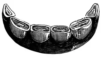 - Clarke, William H. (1893). Horses' teeth: a treatise on their mode of development, anatomy, microscopy, pathology, and dentistry; compared with the teeth of many other land and marine animals, both living and extinct; with a vocabulary and copious extracts from the works of odontologists and veterinarians. New York: W. R. Jenkins. pp. 210–211. OCLC 9067598.