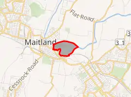 Horseshoe Bend is an inner city suburb in the City of Maitland in the Hunter Region of New South Wales, Australia. It is named for the shape made by the Hunter River flowing through the area as it was observed by early European settlers.[2] It is sometimes colloquially referred to by residents as "The Bend".