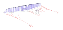 The horseshoe vortex model is a simplified representation of the vortex system of a wing. In this model the wing vorticity is modelled by a bound vortex of constant circulation, travelling with the wing, and two trailing wingtip vortices, therefore having a shape vaguely reminiscent of a horseshoe.[1][2] A starting vortex is shed as the wing begins to move through the fluid, which dissipates under the action of viscosity,[3] as do the trailing vortices far behind the aircraft.