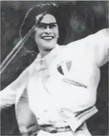 García was one of only three women sent by Mexico to compete in the 1951 Pan American Games in Buenos Aires, compared with 64 Mexican men sent that year.[4] In the javelin throw, she finished fifth in the preliminary round and advanced to the finals, where she threw 39.45 metres to take the gold medal, 1.37 m ahead of second-place Amelia Bert of the US. However, her performance was challenged by the Panama athletics delegation, who claimed that only four athletes should have been allowed to advance to the finals. It was the first protest in Pan American Games history.[5]