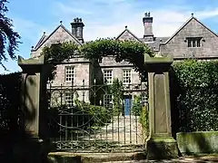 Horton Hall is a Jacobean manor house,[3] built on the site of an earlier house dating back to the 12th Century. It was in the ownership of the Edge family from the 1330s until 1710. It was damaged in the English Civil War, and rebuilt by Timothy Edge from 1653; his initials with the date occur on the lintel of the gateway in the garden.[4]